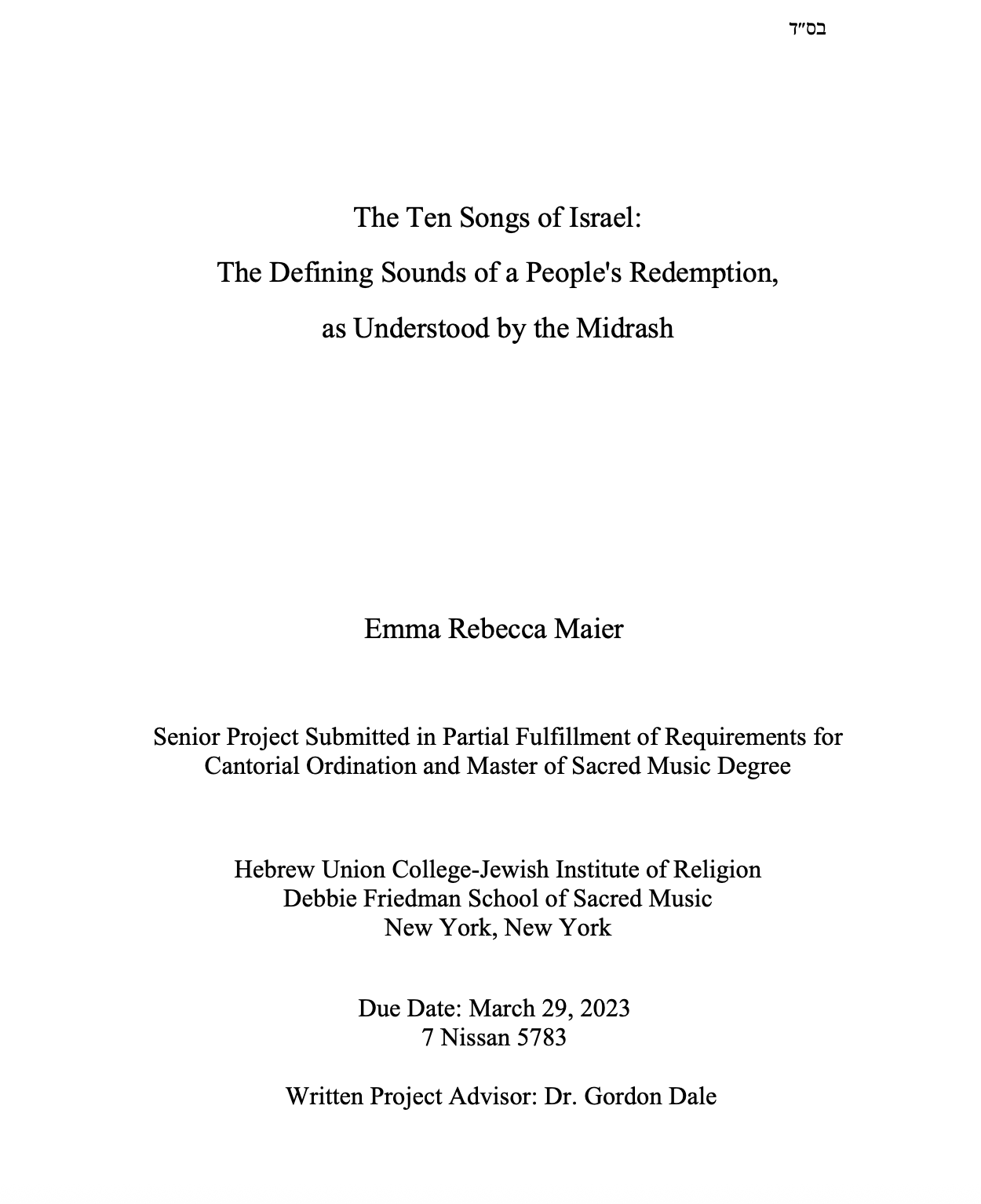 Read Cantor Maier's Cantorial Thesis More to come, soon…. Cantor Maier's original composition in honor of the 50th anniversary of Genesis of Ann Arbor